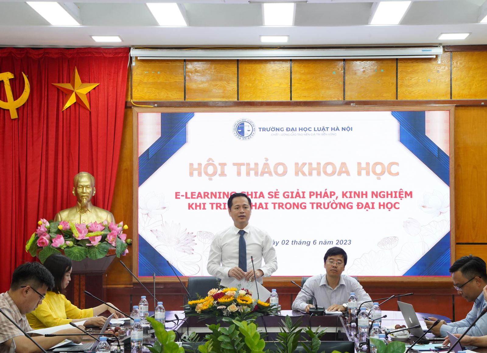 Sáng ngày 02/6/2023, Trường Đại học Luật Hà Nội tổ chức Hội thảo khoa học cấp Trường: “E-learning chia sẻ giải pháp, kinh nghiệm khi triển khai trong trường Đại học” dưới sự chủ trì của ThS. Phạm Văn Hạnh – Giám đốc Trung tâm Công nghệ thông tin và TS. Trần Vũ Hải – Phó Trưởng Phòng Quản lý khoa học và trị sự Tạp chí.