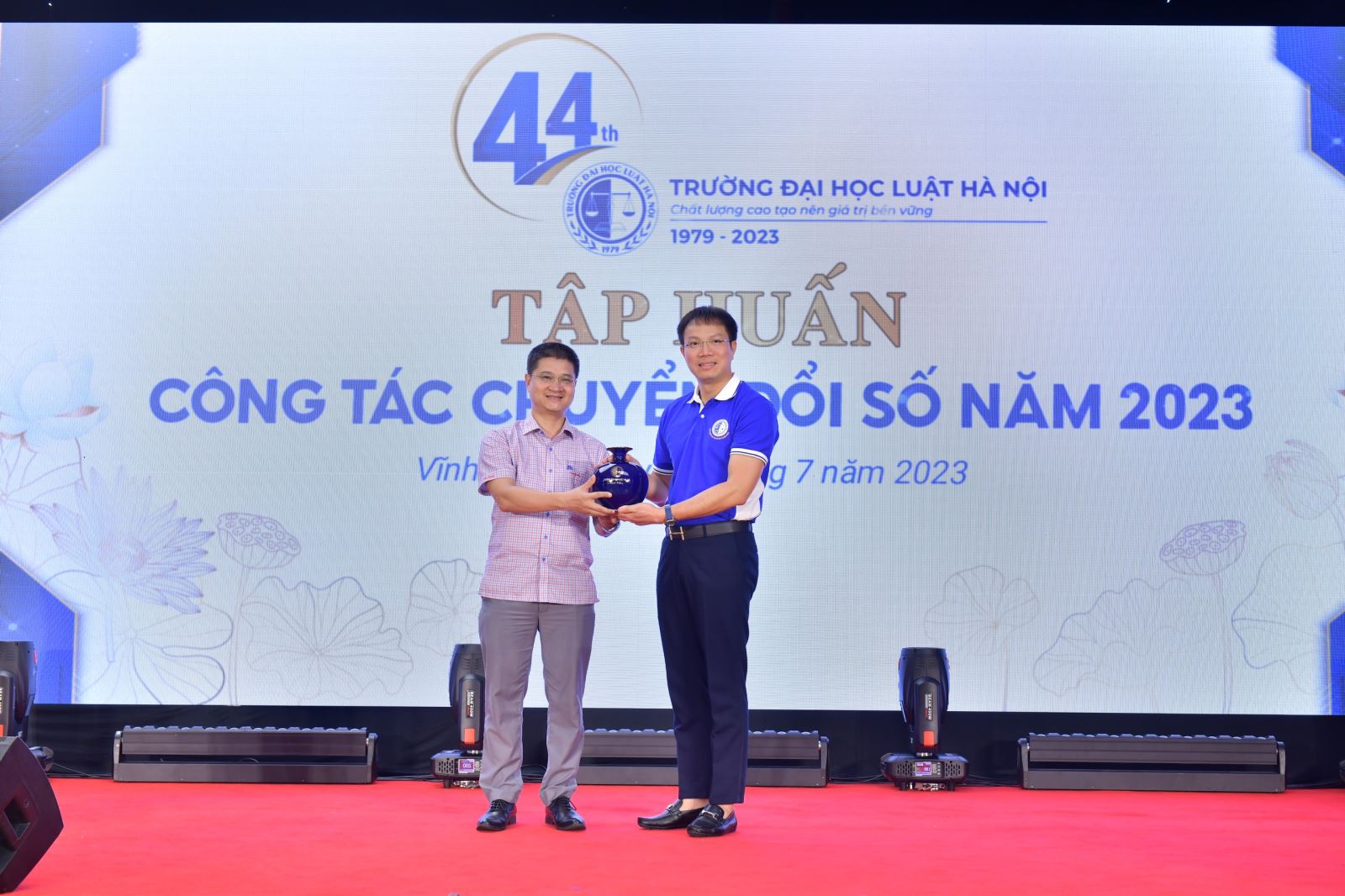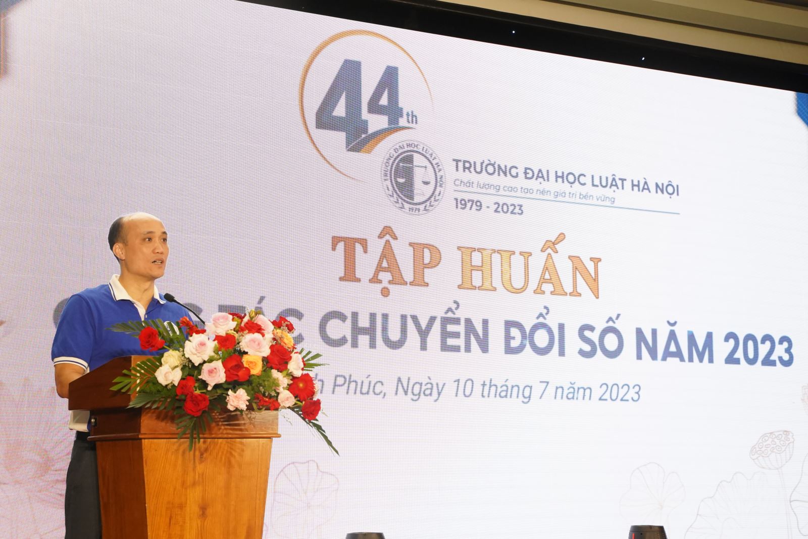 Thay mặt lãnh đạo trường, PGS.TS Tô Văn Hòa gửi lời cảm ơn tới Lãnh đạo Bộ Giáo dục – Đào tạo, Lãnh đạo Bộ Tư pháp và các cơ quan, đơn vị đã giúp đỡ Nhà trường trong công tác chuyển đổi số. Bên cạnh đó, Phó Hiệu trưởng Tô Văn Hòa cũng cảm ơn TS Tô Hồng Nam đã truyền đạt, chỉa sẻ những kiến thức rất hữu ích cho toàn thể các thầy cô Nhà trường.